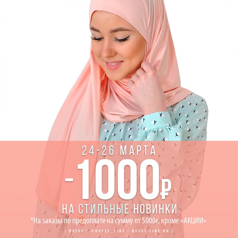 Только с 24 по 26 марта HAYAT дарит вам скидку 1000 рублей при заказе на сумму от 5000 рублей (с учетом всех скидок). Нам кажется, это неплохое дополнение к покупке. Промокод: SPRING